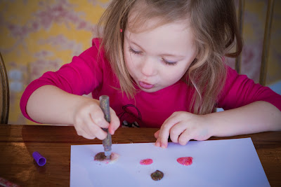 As we were making our bed, we found one of Emma's "lovies" trapped between the sheets. She slept with me Saturday night in "Nana's big plumpy bed" - along with a large amount of stuffed animals. This little stuffed lobster that her Mommy brought back from a business trip was left behind.